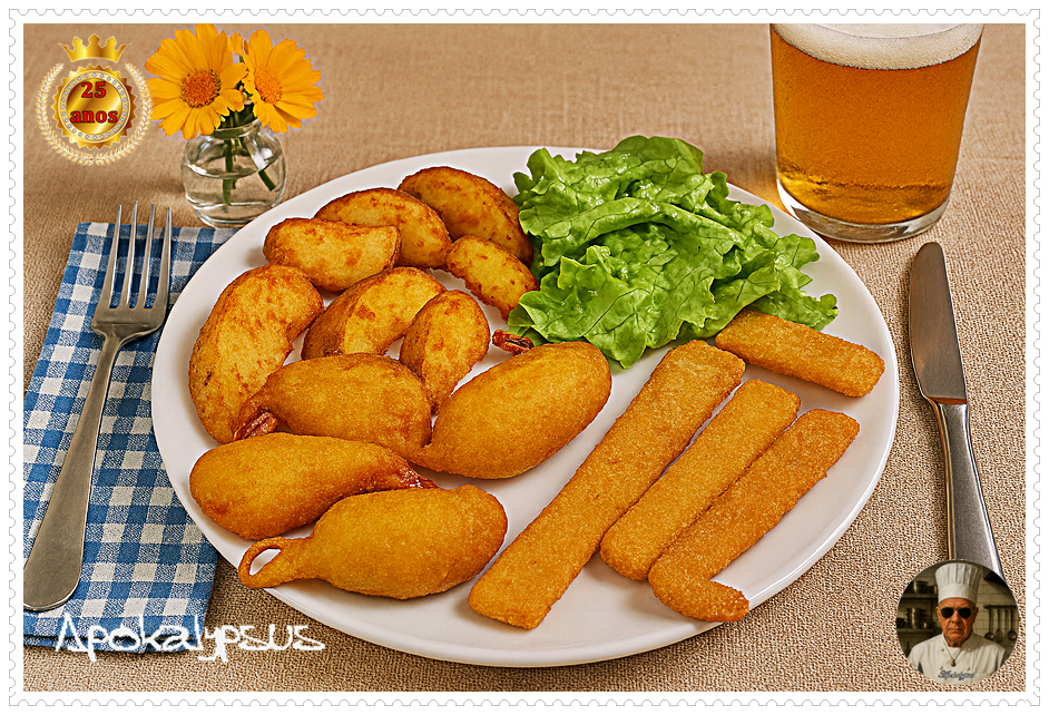 612: Camarões Panados, Tiras do Mar com Polme Crocante e Batatas Rústicas Wedges na Airfryer