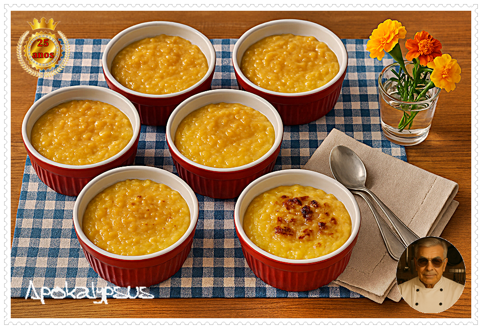 – Já preparei várias receitas de Arroz Doce sem ovos, esta é uma delas que publiquei em  Novembro de 2023. Recentemente, em Março deste ano, preparei um Arroz Doce com leite condensado e natas – também sem ovos -, existindo muitas formas de preparar esta receita sem levar ovos, substituindo-os pela farinha Custard.