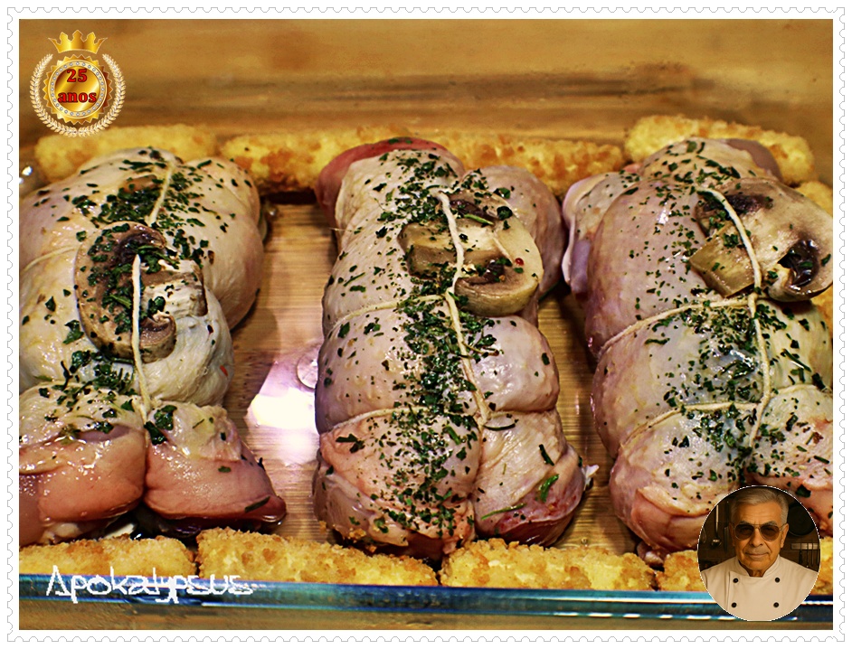 👨🏻🍳 1 emb. de pernas de frango recheadas com manteiga de alho, cogumelos e coentros (de compra) 🐔❄️