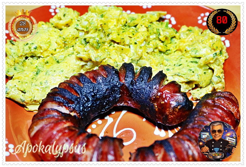 Chouriça Assada na Canoa com Ovos Mexidos de Coentrada 🥩🔥🥚🍃